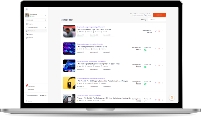 Our marketplace offers a variety of projects across industries like writing, design, programming, marketing, and more.